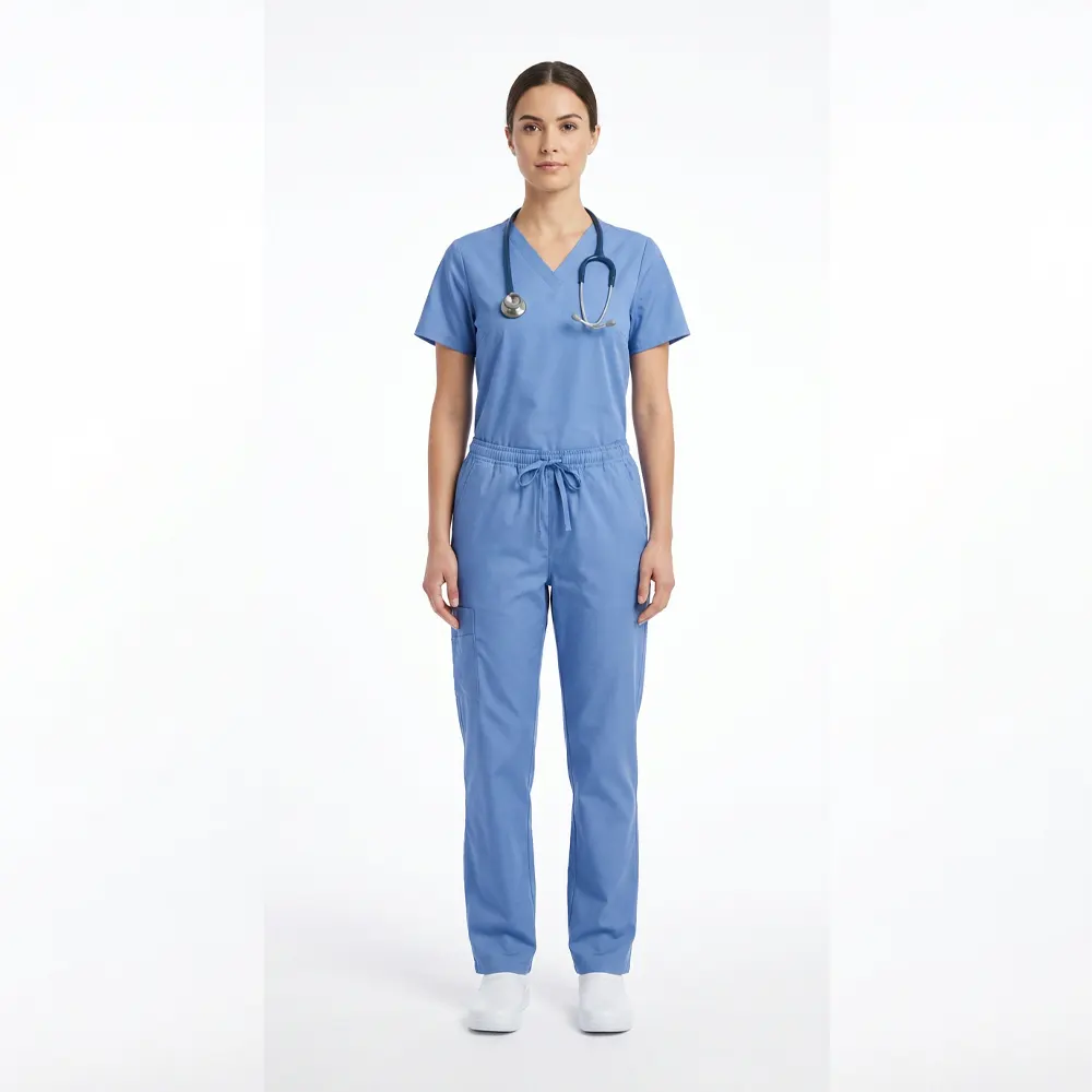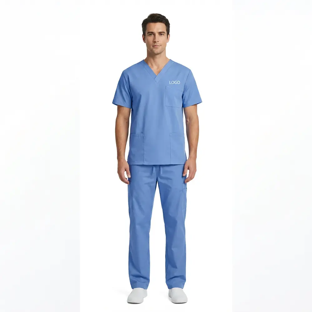 Medical scrubs set designed for both men and women, made for maximum comfort during long workdays. This set includes both top and pants, made of soft, breathable and durable fabric that allows for great freedom of movement. Perfect for doctors, nurses and healthcare professionals who need reliable and professional workwear.
